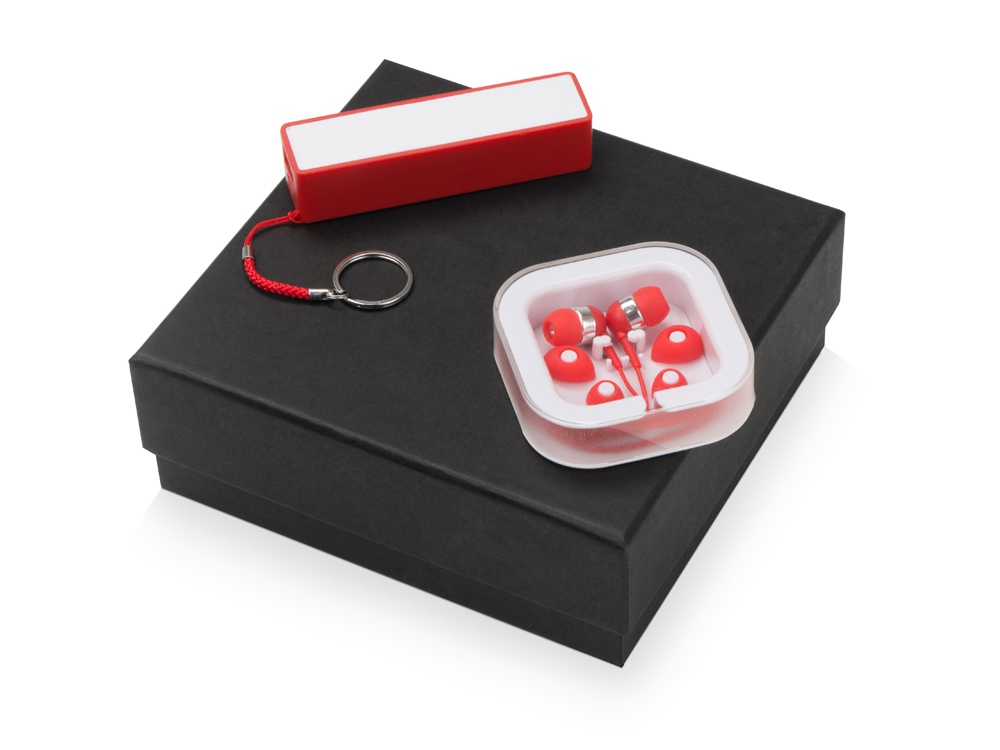 Подарочный набор Non-stop music с наушниками и зарядным устройством, красный