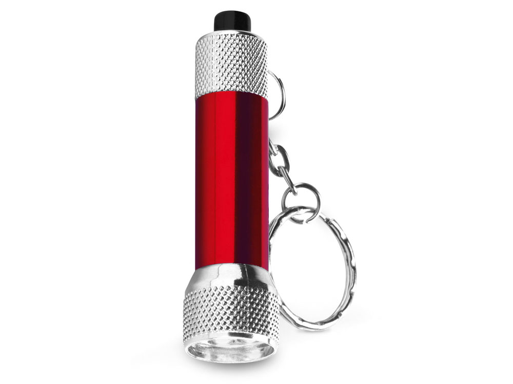 LERGAN. Брелок с лампочками LED, Красный. Брелок из алюминия, с 3 лампочками LED. Данный товар поставляется с 4 батарейками LR44. Вид нанесения, рекомендуемый поставщиком: гравировка, тампопечать