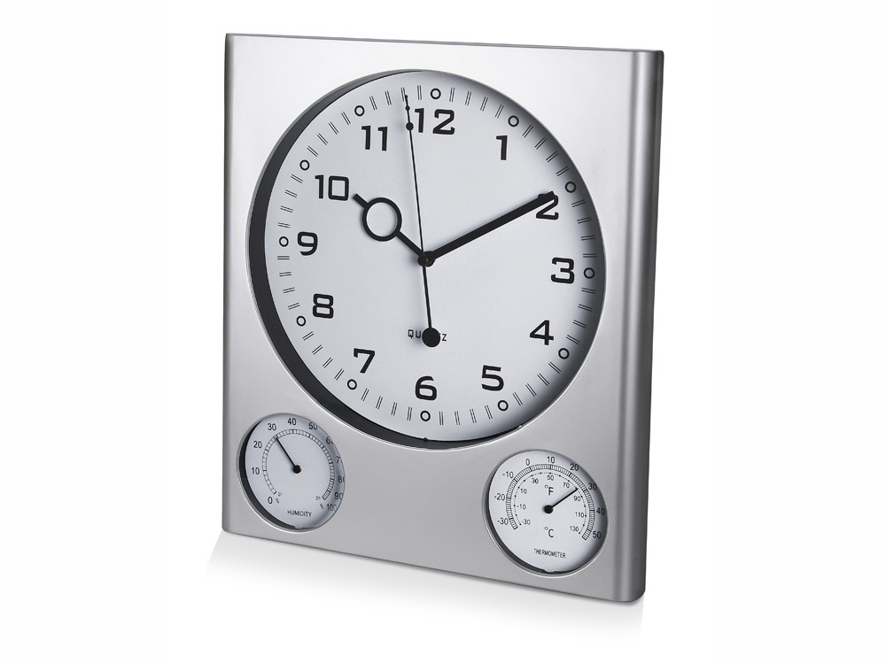Стильная настенная метеостанция дополнит любой интерьер, придав ему неповторимость. Благодаря погодной станции вы всегда будете знать какой микроклимат в помещении. Необычный и очень полезный подарок для руководителей. Погодная станция настенная: часы, термометр, гигрометр Тампопечать (1 цвет (цветные изделия)) на данный товар осуществляется бесплатно. Оплачивается только настройка оборудования в размере 8200 рублей на весь тираж.