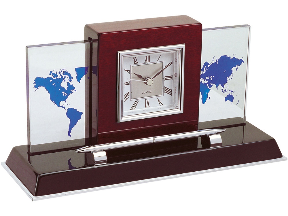 Настольный прибор Карибы с часами, ручкой и картой мира