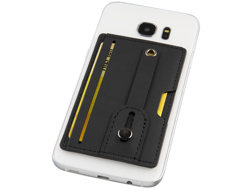Удобный бумажник для телефона с защитой RFID с ремешком. Этот бумажник с защитой от сканирования RFID вмещает 2 банковские карты или удостоверения личности и защищает их от несанкционированного сканирования и мошенничества. Клейкая лента на обратной стороне бумажника позволяет крепить его к смартфону с плоской задней поверхностью. К бумажнику прикреплен ремешок, позволяющий удобно держать телефон в руке. Кожа ПУ. Тиснение (Блинт) на данный товар осуществляется бесплатно. Оплачивается только настройка оборудования в размере 6200 рублей на весь тираж.