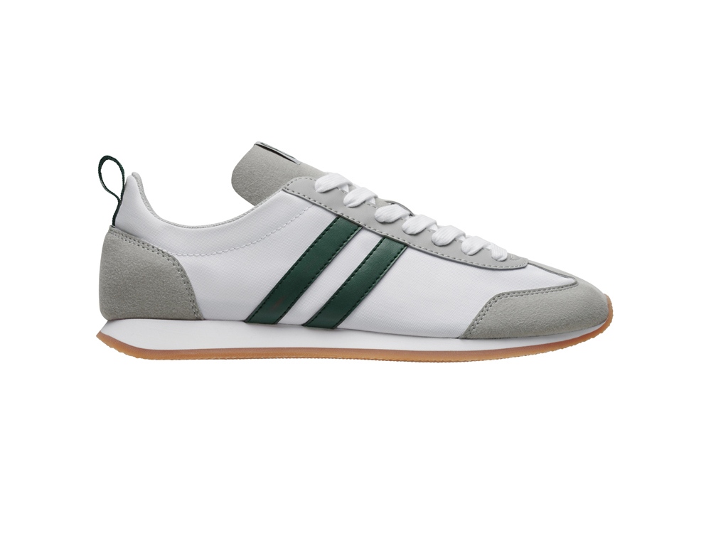 Повседневные кроссовки в стиле ретро с узким носком и резиновой подошвой. Фиксация на ноге с помощью шнурков, декоративные боковые полоски.