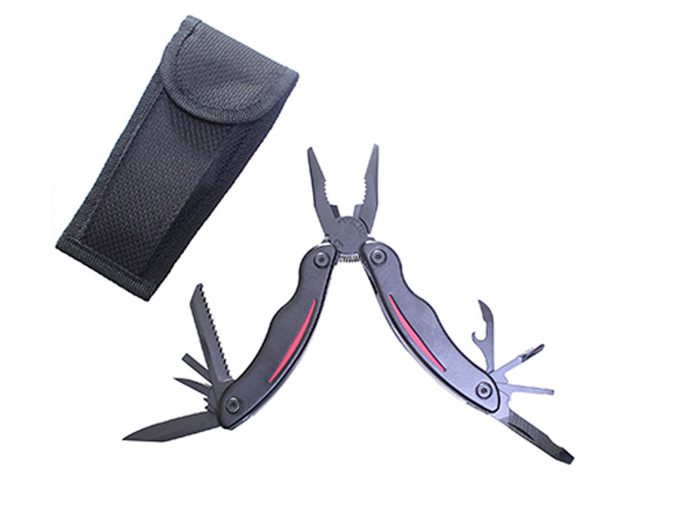 Мультитул Stinger, 105x50 мм, 9 функций, сталь/пластик, чёрно-красный, в комплекте нейлоновый чехол