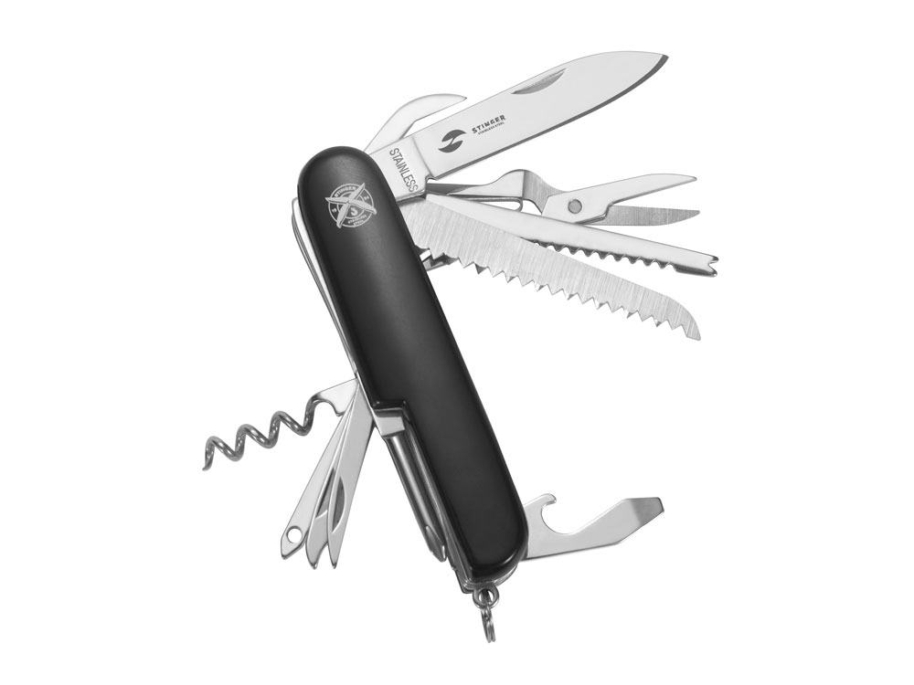 Нож перочинный Stinger, 89 мм, 15 функций, материал рукояти: АБС-пластик (чёрный)