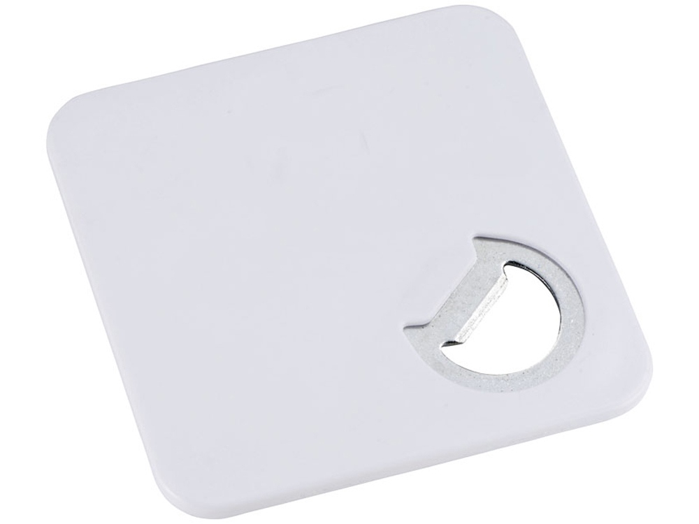 Костер Rally с открывалкой. Квадратный костер с интегрированной открывалкой и нижним покрытием из пены для предотвращения скольжения. АБС пластик. Тампопечать (1 цвет (белые изделия)) на данный товар осуществляется бесплатно. Оплачивается только настройка оборудования в размере 3600 рублей на весь тираж.