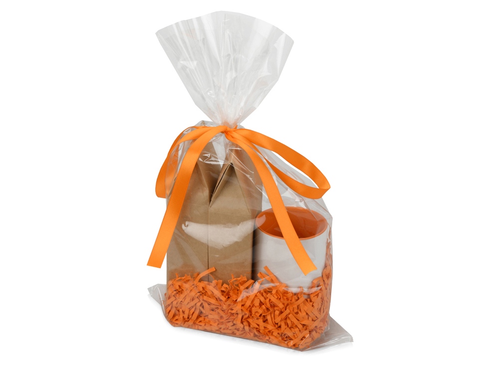 Отличный подарок для идеального чаепития. В набор входят два вида чая (черный и зеленый) и стильная кружка Gain. Продуктовый набор упакован в прозрачный пакет и декорирован бумажным наполнителем.