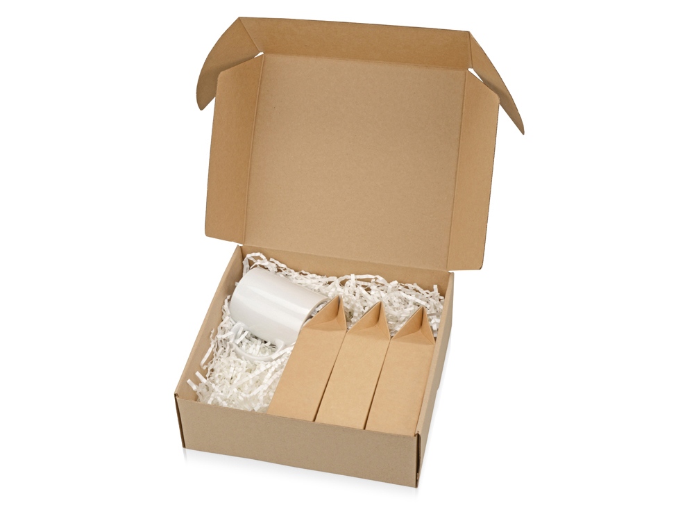 Прекрасный набор из черного, зеленого и фруктового чая придется по вкусу даже самым требовательным клиентам, а кружка Марго с вашим логотипом или промо информацией будет напоминать об успешном сотрудничестве. Набор упакован в крафтовую картонную коробку, которую также можно персонализировать. Тампопечать (1 цвет (белые изделия)) на данный товар осуществляется бесплатно. Оплачивается только настройка оборудования в размере 7300 рублей на весь тираж.