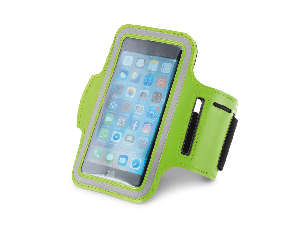 BRYANT. Наручный чехол для смартфона, Светло-зеленый. Наручный чехол из soft shell высокой плотности для смартфона до 5''. Чехол содержит отражающие элементы и регулируемую застежку. Вид нанесения, рекомендуемый поставщиком: тампопечать, трафаретная печать