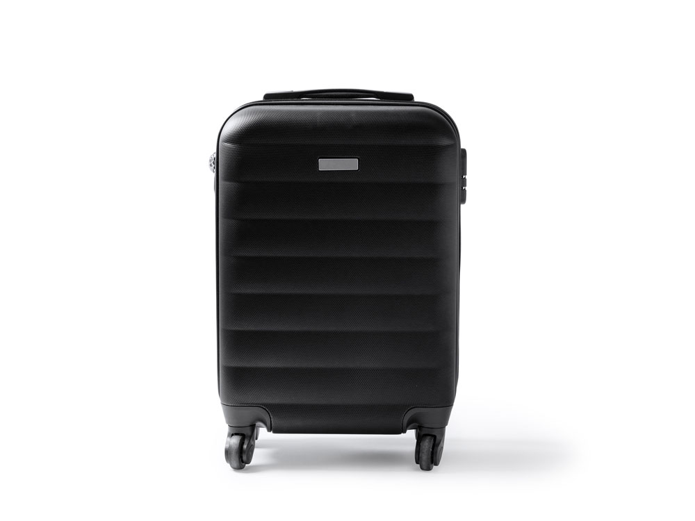 Чемодан из прочного АБС-пластика. Внутри два основных отделения и дополнительный сетчатый карман. Включает встроенный замок безопасности.