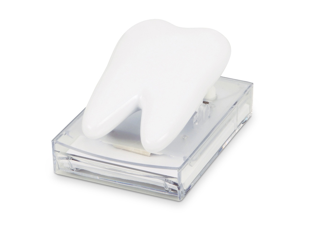 Оригинальный диспенсер в форме зуба отлично впишется в интерьер. При нажатии диспенсер плавно и аккуратно подает бумагу. Отличный сувенир для работников медицинской сферы деятельности. Тампопечать (1 цвет (белые изделия)) на данный товар осуществляется бесплатно. Оплачивается только настройка оборудования в размере 4000 рублей на весь тираж.