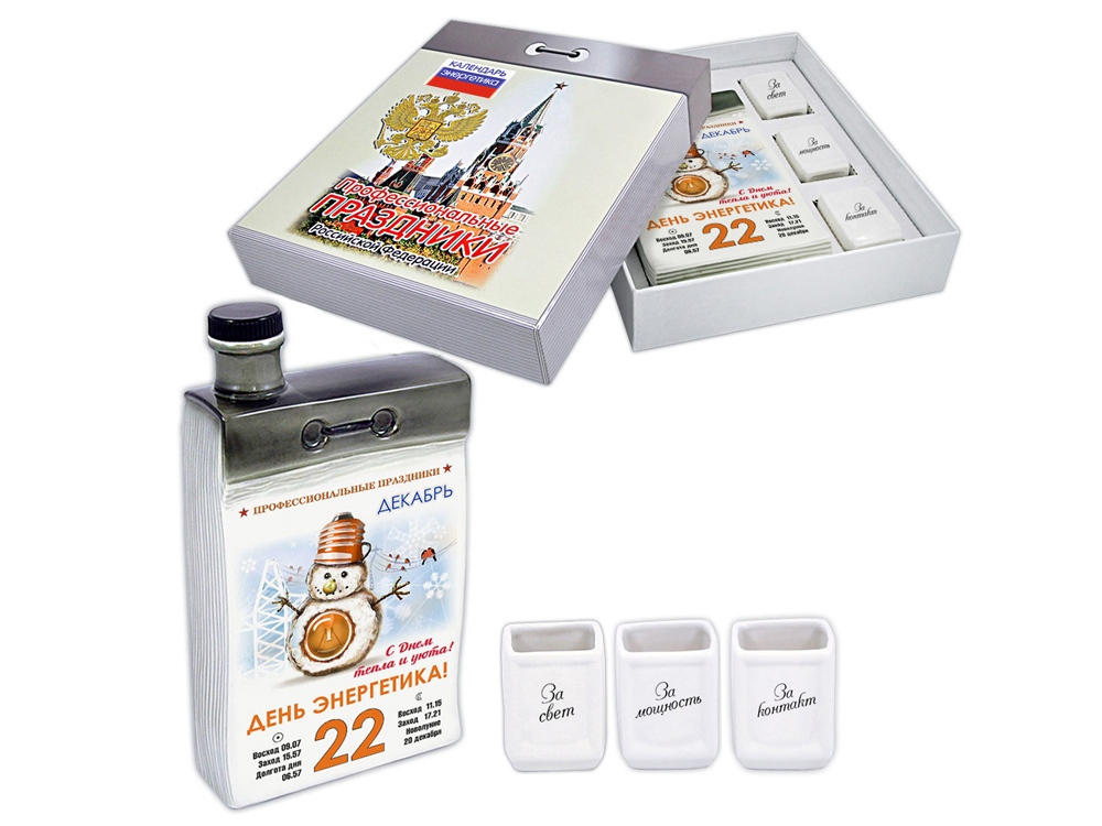 Стильный набор из штофа и рюмок стилизованный под профессиональный календарь станет креативным подарком к профессиональному празднику. Штоф и рюмки изготовлены из высококачественного фарфора. На каждой рюмке написано оригинальное послание-тост. Упакован подарок в коробку стилизованную под календарь. Идеальный и оригинальный подарок , чтобы поздравить сотрудника или руководителя с профессиональным праздником.