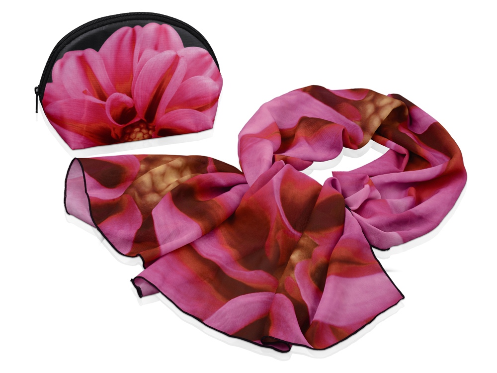 Изысканный подарочный набор для стильной женщины. Косметичка и шарф с цветочным принтом, выполненные в едином стиле, станут отличным дополнением к образу. Настоящий вкус проявляется в деталях. Термотрансфер (1 цвет (цветные изделия)) на данный товар осуществляется бесплатно. Оплачивается только настройка оборудования в размере 9200 рублей на весь тираж.