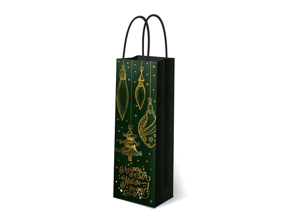 Подарочный пакет под бутылку С Новым годом! (зеленый)