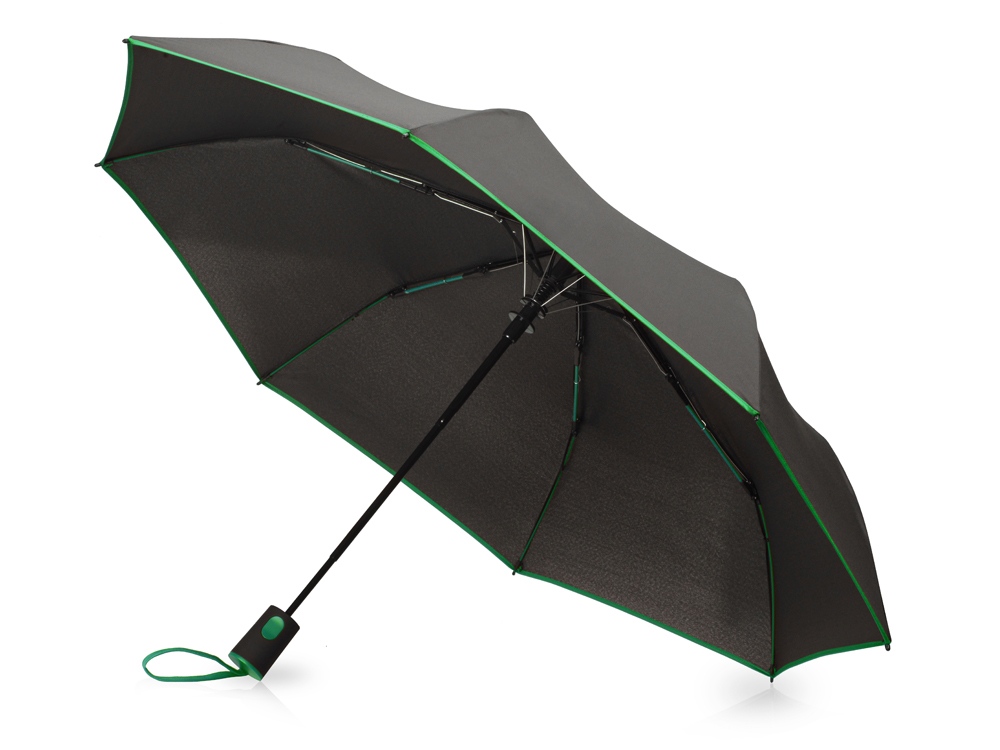 Зонт-полуавтомат складной Motley с цветными спицами, черный/зеленый