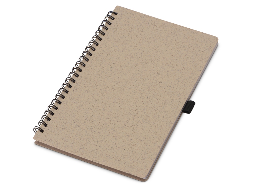 Блокнот с обложкой из переработанной пшеницы и пластика. Блок состоит из 70 листов переработанной бумаги белого цвета. Крепление - пружина. Дополнен петлей для ручки. Тампопечать (1 цвет (цветные изделия)) на данный товар осуществляется бесплатно. Оплачивается только настройка оборудования в размере 8200 рублей на весь тираж.