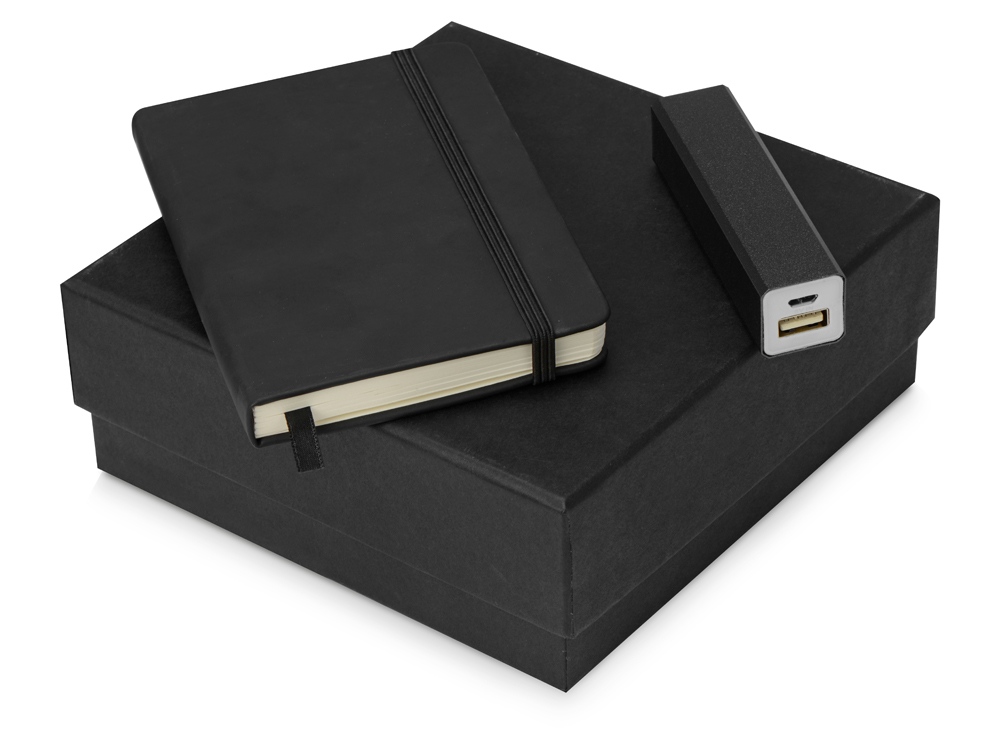 Подарочный набор To go с блокнотом и зарядным устройством, черный