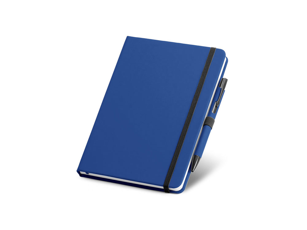 Шариковая ручка и блокнот A5 из искусственной кожи, 160 чистых страниц, разделительная лента и резинка. Персонализируемый набор поставляется с подарочной коробкой из полипропилена с резинкой. Шариковая ручка пишет синим. Шариковая ручка: ø10 x 137 мм | Блокнот: 140 x 210 мм | Коробка: 155 x 214 x 13 мм. Вид нанесения, рекомендуемый поставщиком: УФ-печать, трафаретная печать.