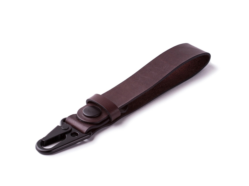 Ремешок сшит из прочной кожи коричневого цвета. Оборудован надёжным металлическим карабином, самопроизвольное расцепление которого невозможно. Ключи, прицепленные к нему, обречены вечно храниться в глубинах сумки или кармана джинсов, и у них нет ни единого шанса потеряться. Прицепить ремешок можно к шлёвке джинсов или к куртке. Тиснение (Блинт) на данный товар осуществляется бесплатно. Оплачивается только настройка оборудования в размере 8800 рублей на весь тираж.