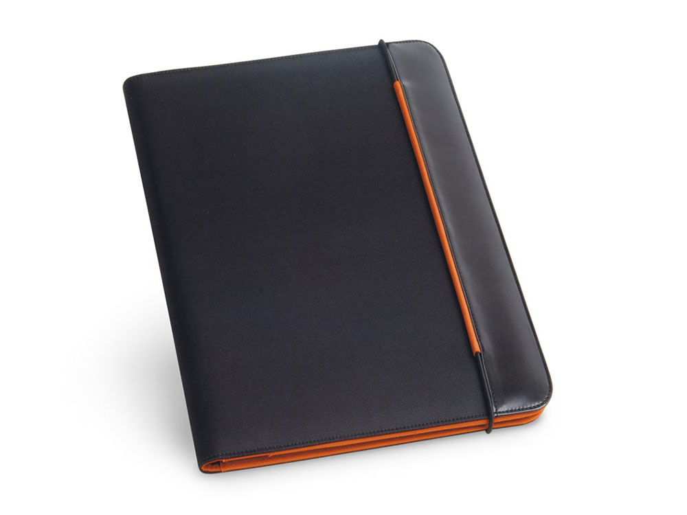 Папка формата А4 из искусственной кожи и 800D с внутренней стороной из микрофибры. В папке есть резинка для закрытия, а внутри - блок из 20 листов в линейку, 3 кармана и держатель для шариковой ручки (ручка не входит в комплект). 245 x 315 x 15 мм. Вид нанесения, рекомендуемый поставщиком: трансфер.