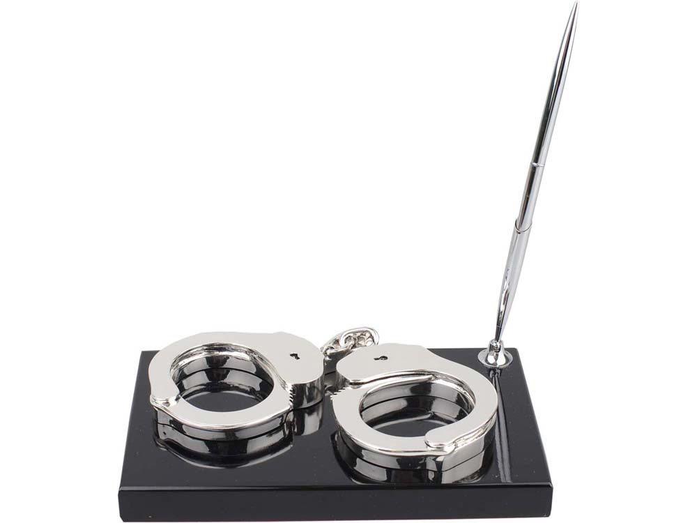 Настольный прибор Правопорядок – замечательный подарок и тем, кто работает в правоохранительных органах, и тем, кто считает, что лучше пусть наручники будут на столе, чем на руках. Иными словами, наручники на столе защищают их обладателя от тех наручников, которые могут теоретически оказаться на запястьях. Это особенно важно для бизнесменов, ведь в нашей стране от сумы и от тюрьмы никто не застрахован. И, наконец, несмотря на грозный вид аксессуара, получив такой прибор в подарок, любой улыбнется, а это уже хорошо. Шильд спектрум (Шильд спектрум) на данный товар осуществляется бесплатно. Оплачивается только настройка оборудования в размере 1000 рублей на весь тираж.
