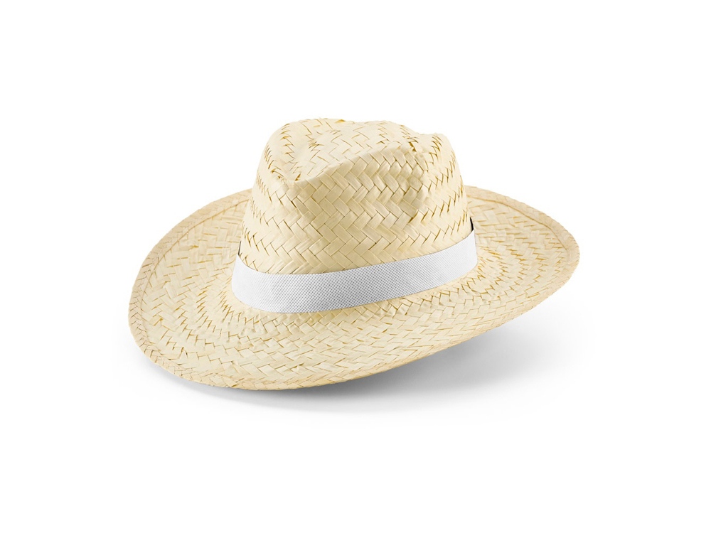 Шляпа из натуральной соломы с лентой из полиэстера. Для заказов без нанесения лента поставляется отдельно от шляпы. Размер: 580 мм