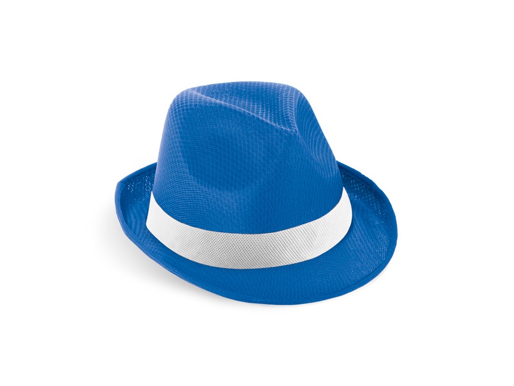Шляпа из РР (доступна в нескольких цветах) с белой лентой из полиэстера. Для заказов без нанесения лента поставляется отдельно от шляпы. Размер: 580 мм