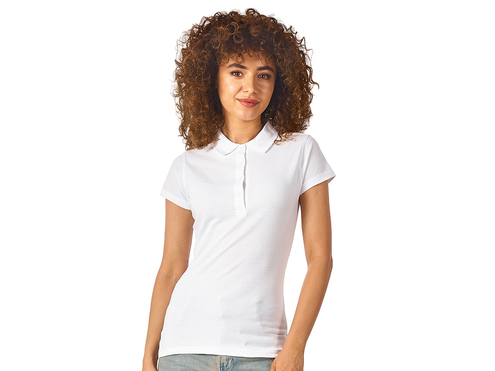 Женская рубашка-поло First. Воротник 1х1. Обшивка внутри воротника. Мужская и детская модели с 2 пуговицами, женская - с 4 пуговицами. Пуговицы с гравировкой в тон. Пике, 100% хлопок. 160 г/м2. Трафаретная печать (1 цвет (белые изделия)) на данный товар осуществляется бесплатно. Оплачивается только настройка оборудования в размере 8200 рублей на весь тираж.