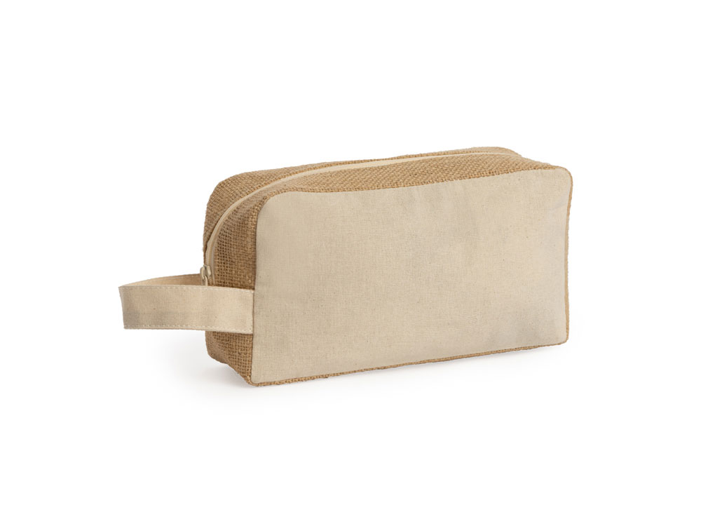 Несессер из хлопка и ламинированного джута. Застежка-молния с джутовым бегунком. Термотрансфер (1 цвет (цветные изделия)) на данный товар осуществляется бесплатно. Оплачивается только настройка оборудования в размере 10000 рублей на весь тираж.