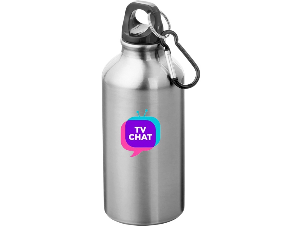 Бутылка для питья Oregon с карабином. Бутылка с одинарными стенками со съемной крышкой. Карабин не предназначен для лазанья. Объем – 400 мл. BPA Free Алюминий. Гравировка (оптоволоконный лазер) (Без чернения) на данный товар осуществляется бесплатно. Оплачивается только настройка оборудования в размере 1100 рублей на весь тираж.