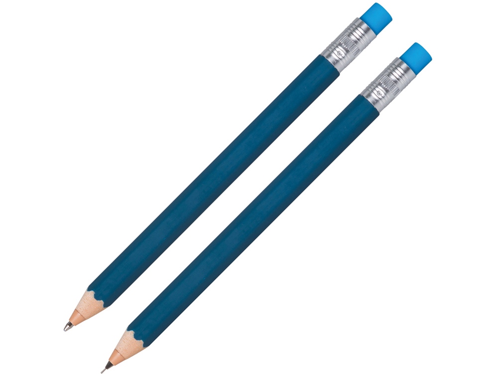 Набор письменных принадлежностей, состоящий из шариковой ручки и механического карандаша, предлагается в персональном картонном футляре. Изюминкой набора является ручка, корпус которой стилизован под карандаш, так что на первый взгляд кажется, что набор состоит из двух карандашей. Тампопечать (1 цвет (цветные изделия)) на данный товар осуществляется бесплатно. Оплачивается только настройка оборудования в размере 4000 рублей на весь тираж.
