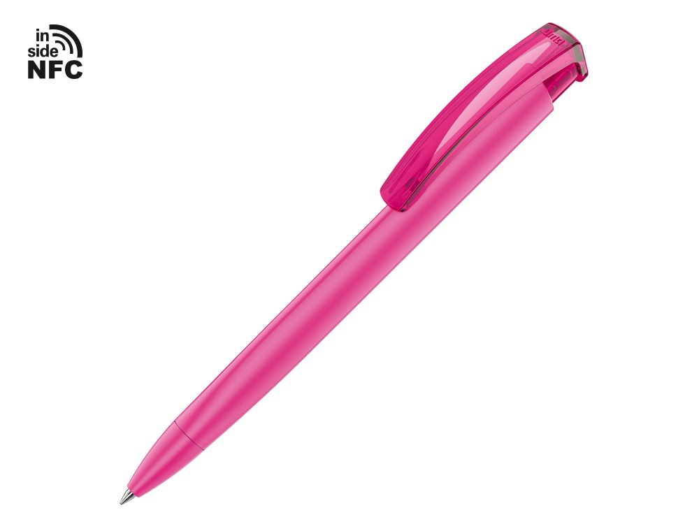 Пластиковая шариковая ручка Trinity K transparent Gum soft-touch с чипом передачи информации NFC обеспечивает быстрый доступ к рекламной информации. Для передачи данных посредством технологии NFC смартфон или планшет, которые поддерживают данную технологию, необходимо поднести к запрограммированной на ручке метке NFC (метка расположена под логотипом NFC). После этого на смартфоне или планшете откроется запрограммированная ссылка на сайт, ролик или начнется загрузка другой информации (заранее загруженной в сеть интернет). Таким образом метка работает как код, при чтении которого смартфон или планшет открывает определенную программу, активирует функцию или ссылку. Широкие возможности данной технологии позволяют самостоятельно запрограммировать метку NFC на ручках UMA и даже установить ограничения по дальнейшему программированию (программирование осуществляется специальной программой). Теперь адрес сайта, каталог и другие рекламные материалы можно запрограммировать на метке NFC и раздавать вместо визиток. Метка NFC активирует одно действие на смартфоне или планшете. Тампопечать (1 цвет (цветные изделия)) на данный товар осуществляется бесплатно. Оплачивается только настройка оборудования в размере 8200 рублей на весь тираж.