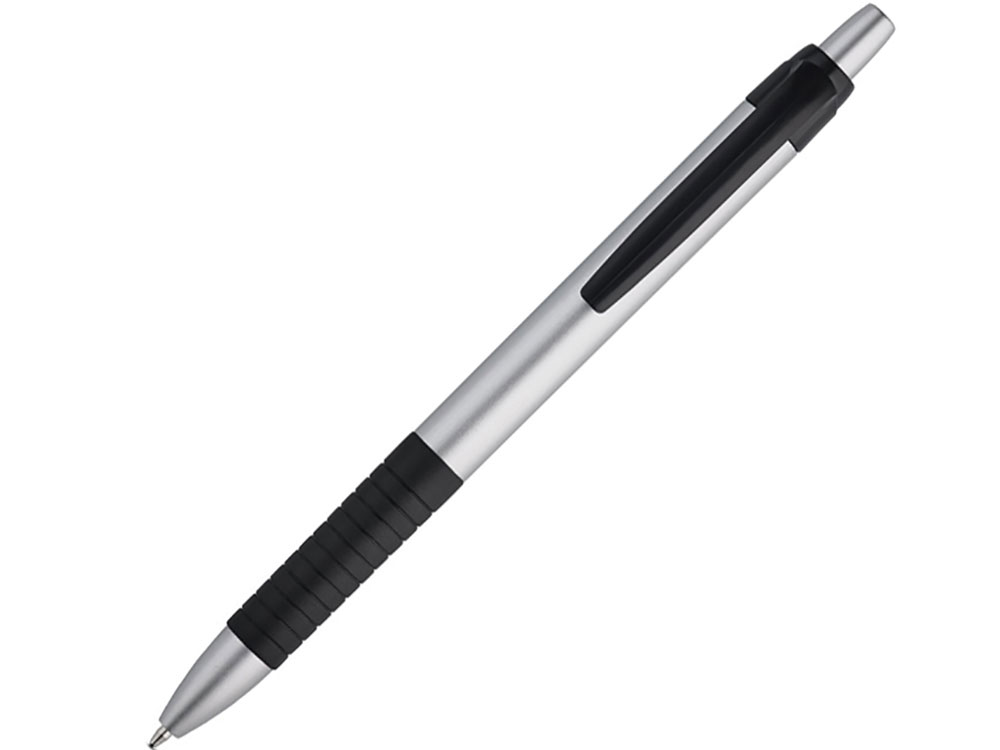 CURL. Шариковая ручка с металлической отделкой, Сатин серебро. Шариковая ручка с металлической отделкой и прорезиненным грипом. Вид нанесения, рекомендуемый поставщиком: тампопечать, круговая трафаретная печать